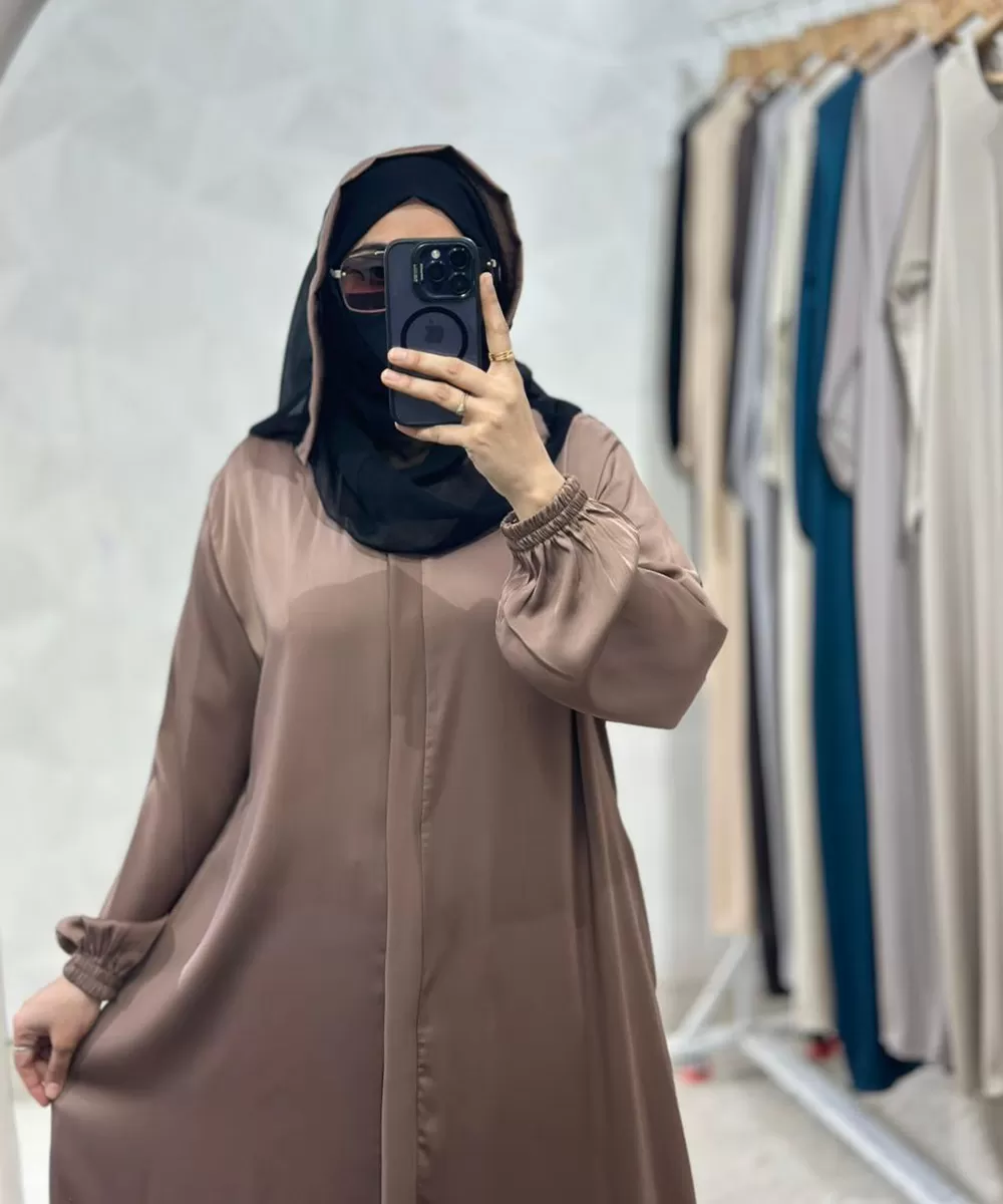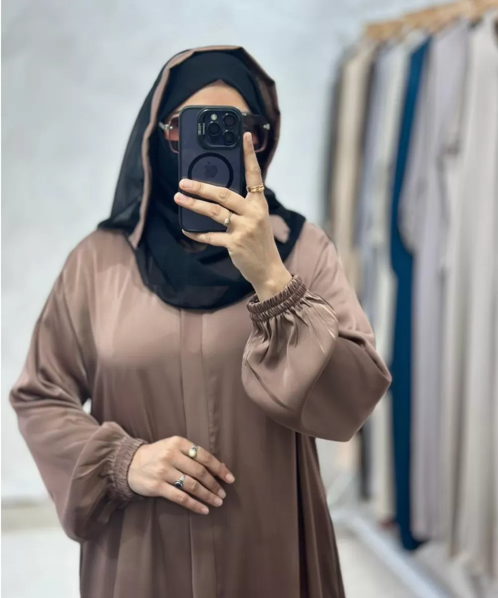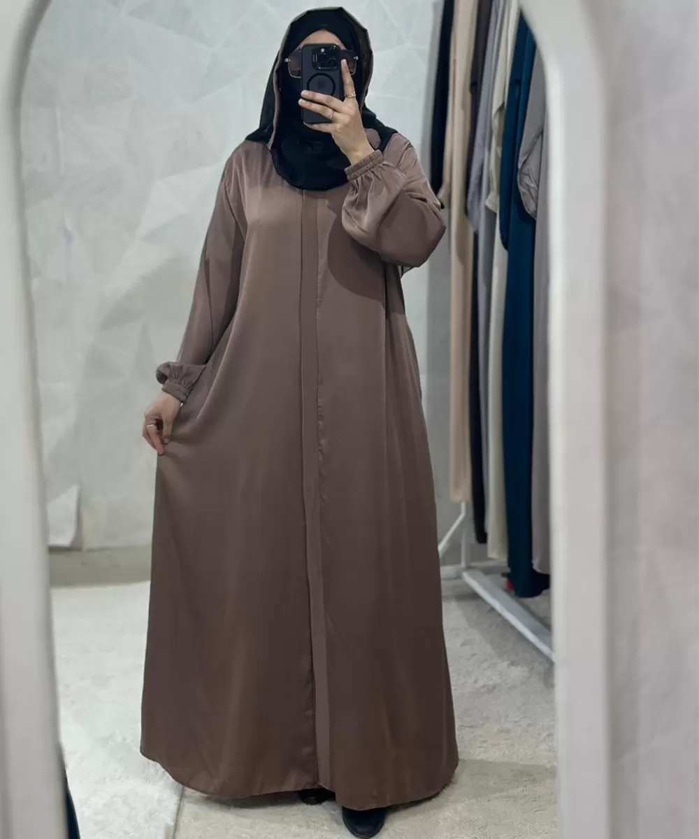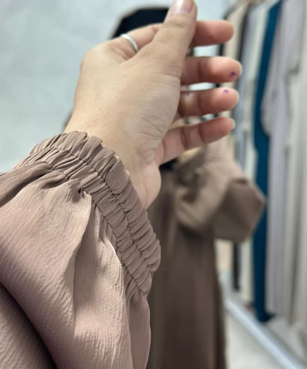 Keep it simple yet stylish with this elegant brown abaya, designed for everyday comfort and effortless grace. Crafted from premium imported fabric, it features a smooth, flowy texture that drapes beautifully and feels light on the skin. The relaxed fit and gathered sleeves add a touch of sophistication while ensuring ease of movement throughout the day. Perfect for daily wear, office use, or casual outings, this abaya combines modesty with modern simplicity. Paired with a contrasting black sheila, it completes a timeless look that’s both chic and comfortable.